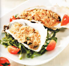 Nel tegame preriscaldato far soffriggere la pancetta, quindi toglierla dal fuoco e sbriciolarla, unire i funghi e lo scalogno tritati, il prezzemolo; distribuire il composto sulle ostriche, salare leggermente, pepare, spolverizzare di pane grattugiato, aggiungere un fiocchetto di burro. Disporre su una teglia le ostriche e far gratinare in forno per circa 10 minuti.